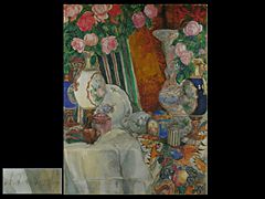 Stillleben mit Porzellanvasen und Blumen