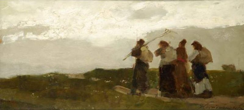 Paysannes de retour des champs