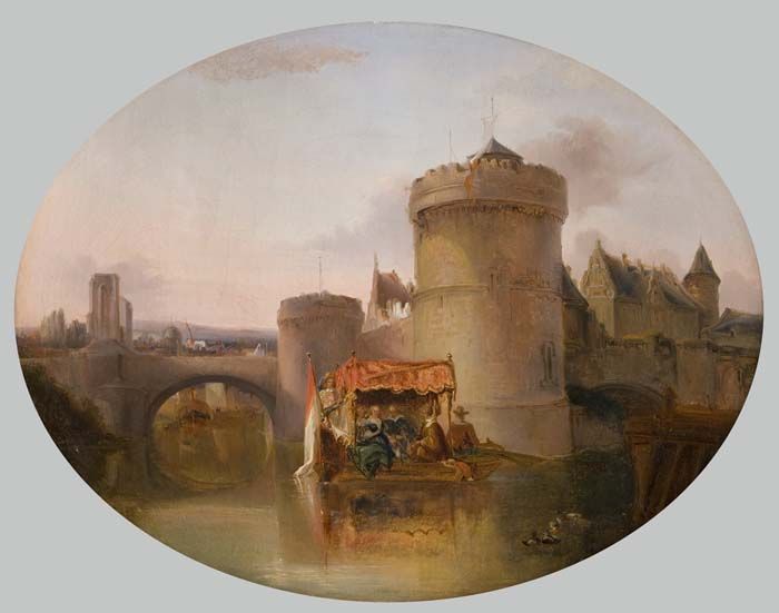 Stadtansicht mit höfischer Gesellschaft im Boot