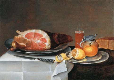 STILLLEBEN MIT SCHINKEN, ZITRONE,