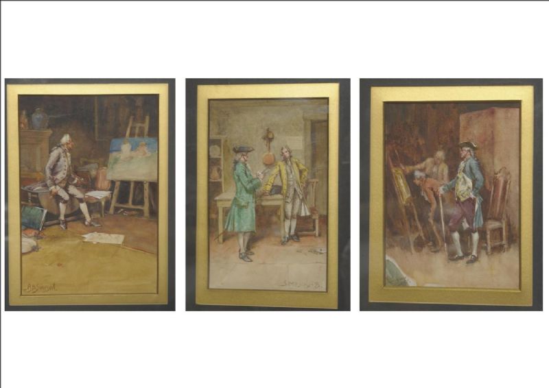 | Artist seated in his studio beside his easel; "The Connoisseurs; "The Message | |