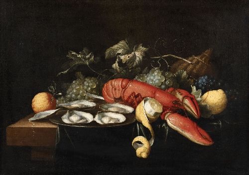 STILL LIFE WITH LOBSTER, OYSTERS AND FRUIT