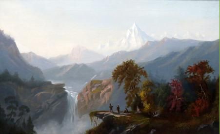 | Indians Along a Ledge in a Mountainous River Landscape | |