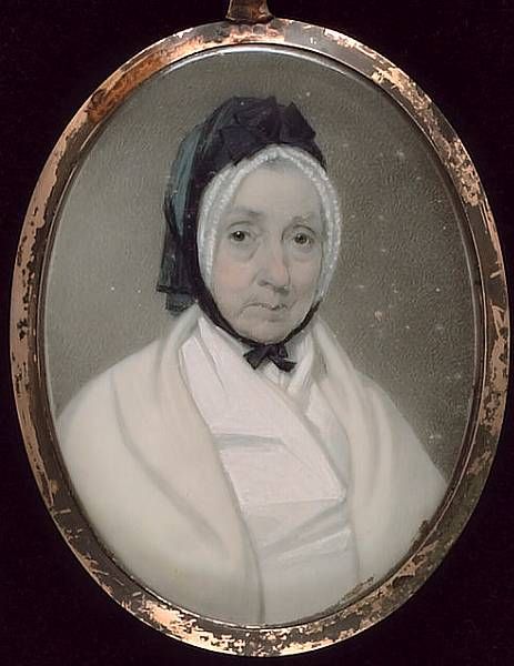 | A Lady, formerly known as Flora McDonald, wearing cream cloak and black bonnet tied beneath her chin. | |