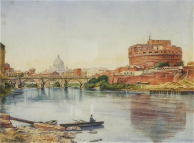 | View of Castel Sant'Angelo, Rome, with St. Peter's in the distance | |