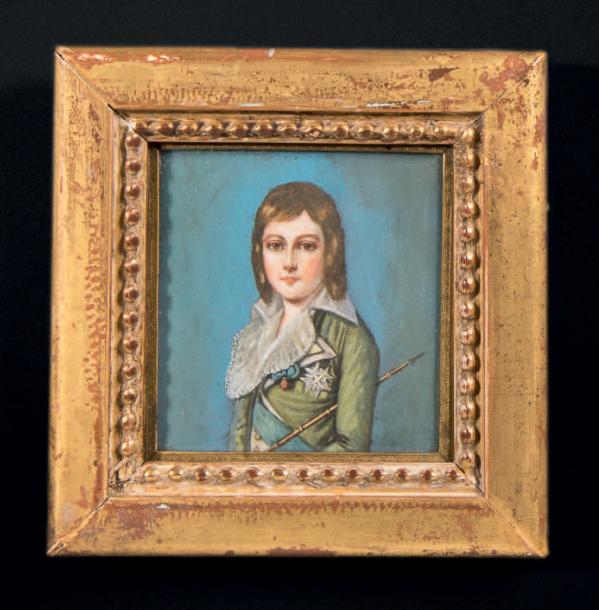 | Portrait du Dauphin Louis XVIII (1785-1795) en buste vers la gauche, presque de face, portant les croix de Saint-Louis et du Sai | |