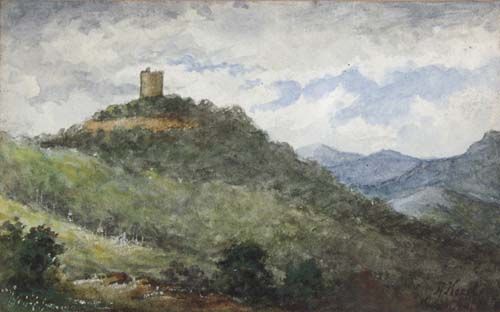 Bergige Landschaft mit Burg,