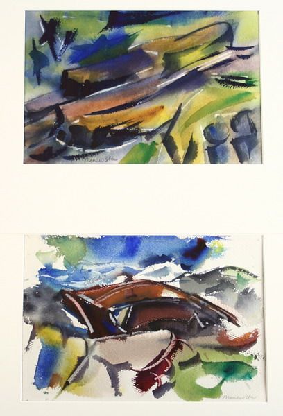| Two abstract paintings of the wreck at Lobster Cove, Monhegan Island, Maine | |