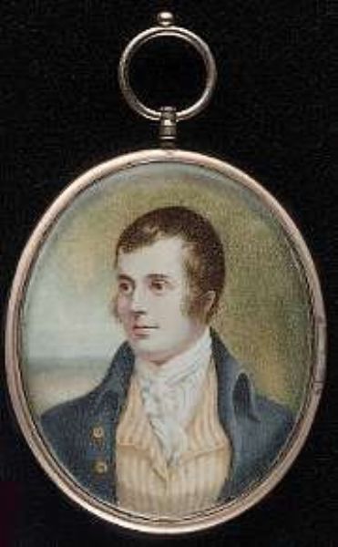 | Robert Burns (1759-96), wearing blue coat, striped yellow and white waistcoat and white cravat | |