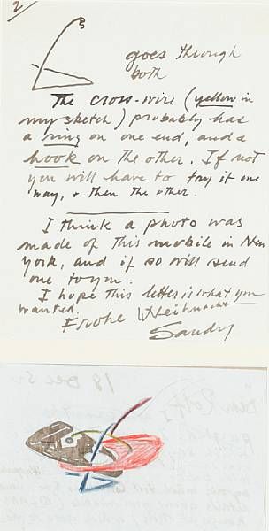 | Two letters, referring to a mobile "Red and Black Planes", with ink and crayon sketch, dated 1952, framed as one. | |