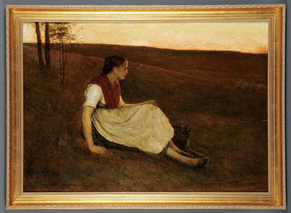 Shepherdress with Dog at Dusk--1880