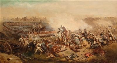 | Schlachtengetümmel zwischen preussischen Kürassieren und österreichischen Infantristen | |
