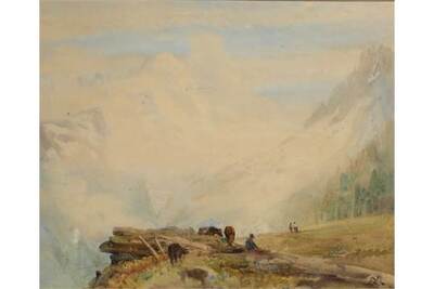| A pair of Continental landscapes showing lakes and mountains, both monogrammed, watercolours | |