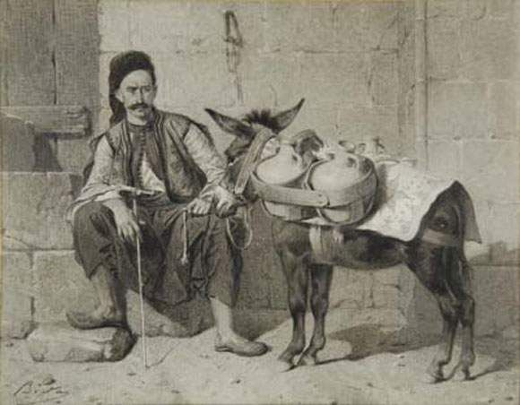 Porteur d'eau oriental et son âne