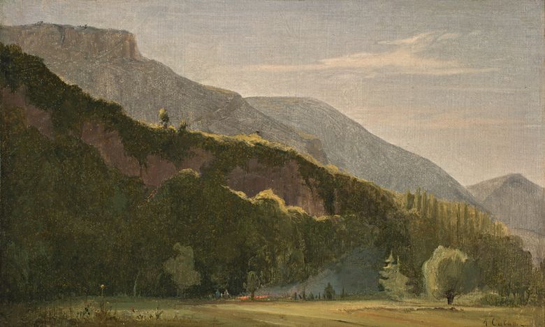 GEBIRGSLANDSCHAFT MIT FEUER IM VORDERGRUND