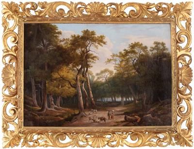 | Waldlandschaft mit Blick auf das Meer und Personen- sowie Tierstaffage | |