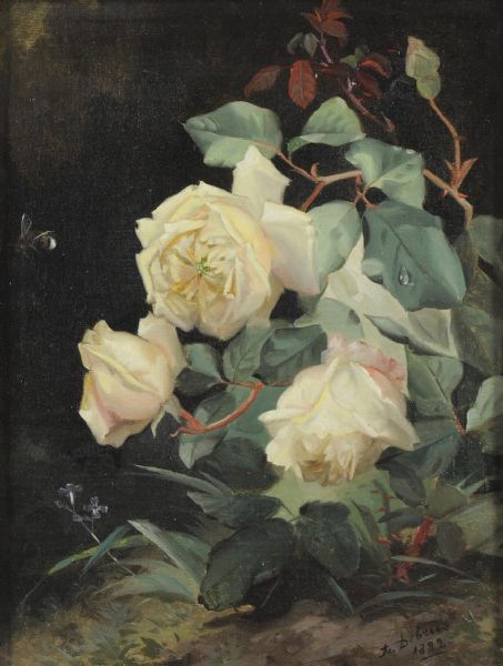 Still life of white roses on a bank