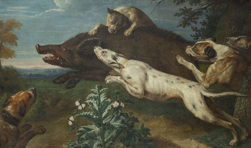 Dogs Hunting a Boar