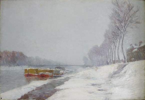 La Seine à Asnières avec le pont de Clichy, sous la neige