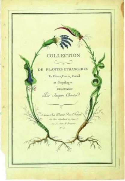 | [Botanique]. Collection de plantes étrangères en fleurs, fruits, corails et coquillages dessinées par Jacques Charton. [1784]. | |
