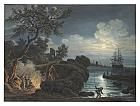 MARINE AU CLAIR DE LUNE AVEC DES PÊCHEURS