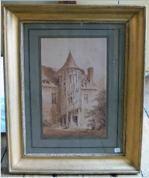 | Wash Brown wash, pen and brown ink, pencil lines on black | |