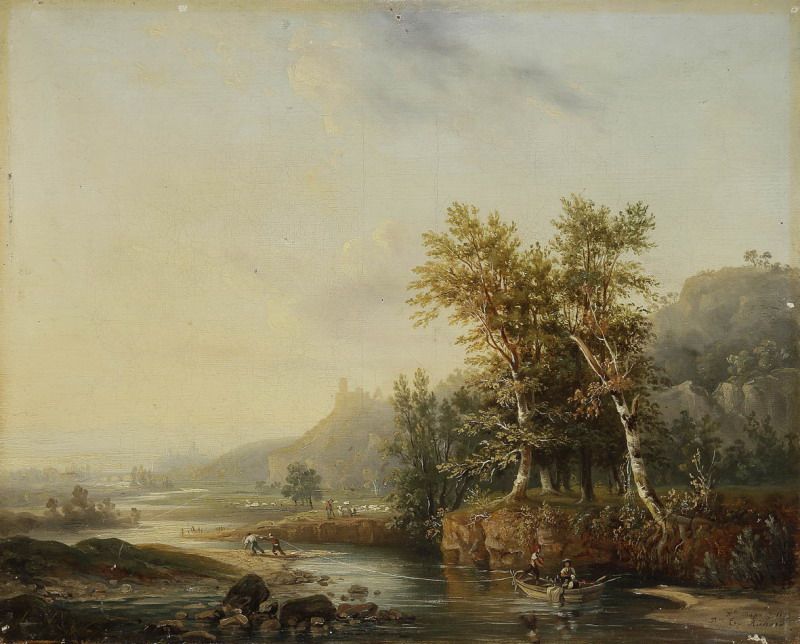 Paysage de rivière avec des pêcheurs