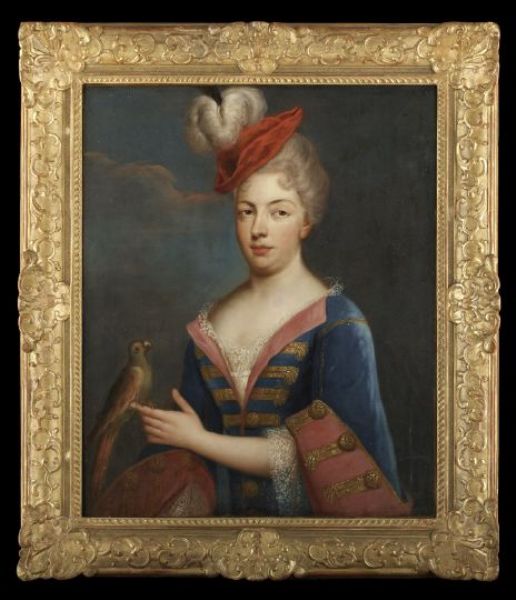 | Portrait of a Gentlewoman Dressed a la Militaire and Accompanied by a Pet Parrot | |