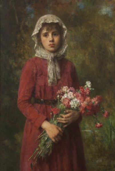 | ''Old Lace and Young Dreams'', portrait of a young girl holding flowers | |
