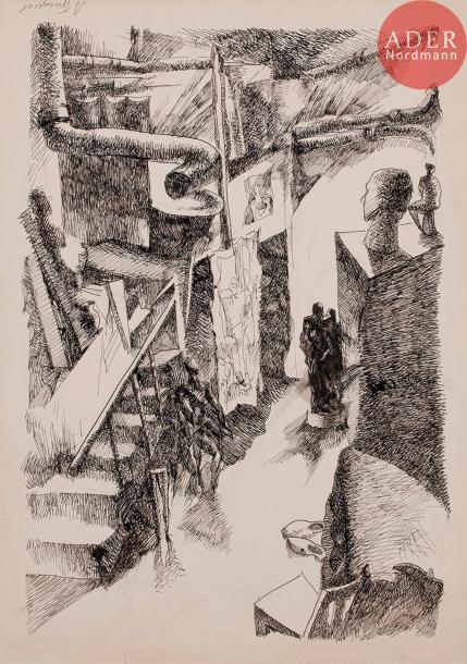 Vu de l’atelier de l’artiste. Deux œuvres.