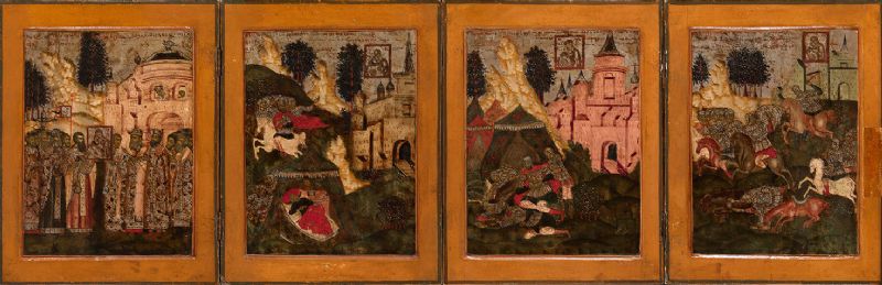 A TETRAPTYCH WITH THE SCENES OF "THE MIRACLES OF THE MOTHER OF GOD OF VLADIMIR"