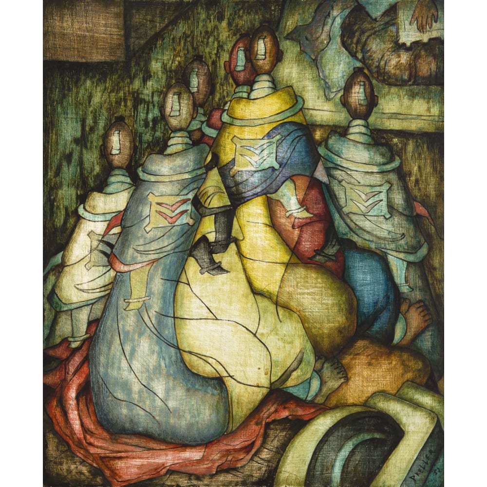 58,5 by 53 by 6,5cm including frame; inscribed with the artist's name and the title on a gallery and Pretoria Art Museum label adhered to the reverse | |