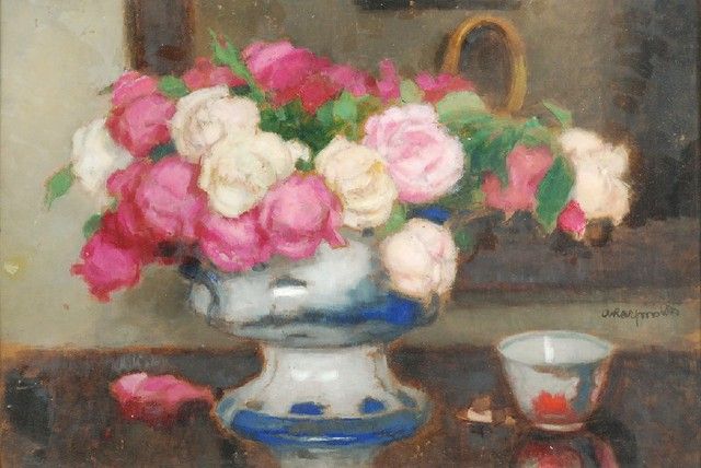 Róże w fajansowym wazonie
