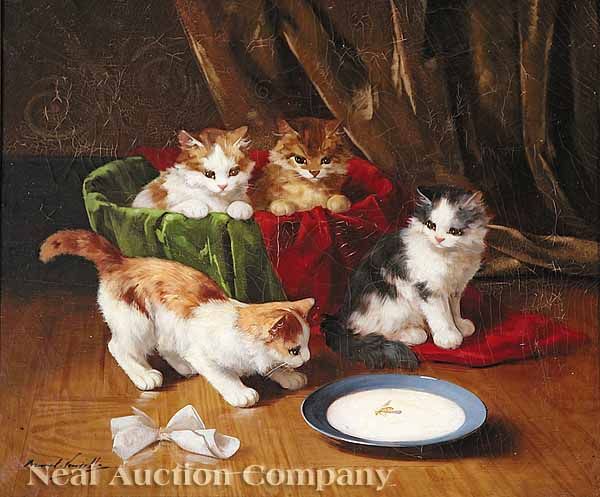 Four Kittens Inspecting a Wasp