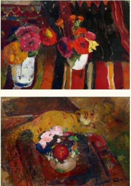 | Nature morte au chat et aux fruits et Nature morte aux bouquets de fleurs. | |