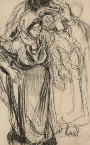 | Etude de gitanes portant un fardeau et Visage de femme de profil avec reprise de l'oreille | |