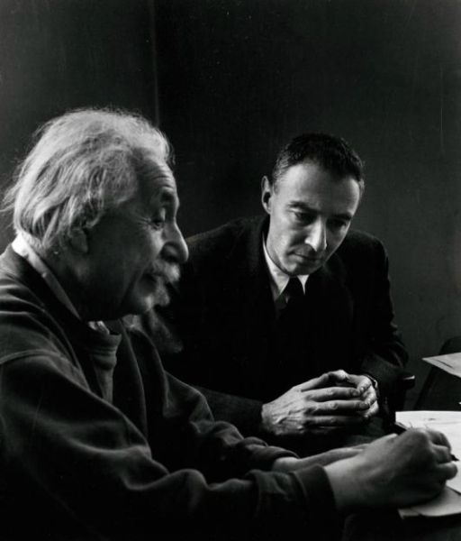 | Albert Einstein et J. Robert Oppenheimer au Princeton's Institute for Advanced Study | |