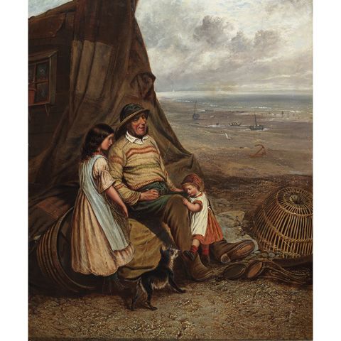 FISHERMAN AND HIS CHILDREN RESTING ON THE COAST