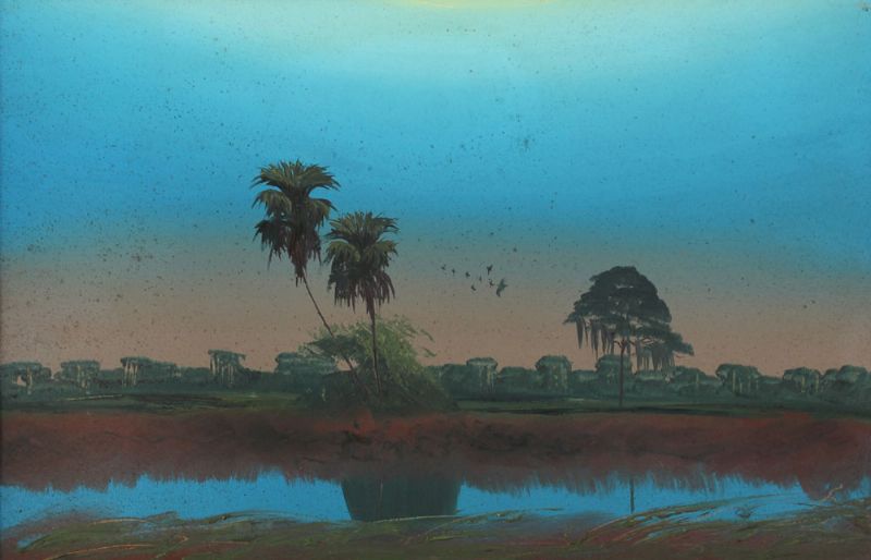 Florida Highwaymen sawgrass scene with birds characteristic of Alfred Hair