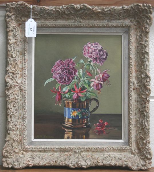 Still Life Study of Carnations and Fuchsia in a Lustre Mug