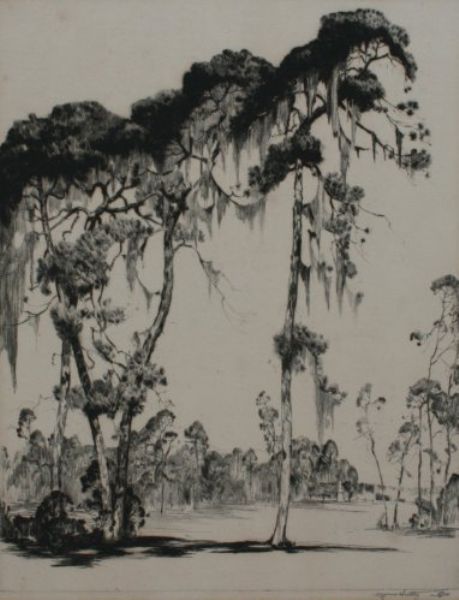 Southern Bayou Landscape w/ Mossy Trees and Cabin