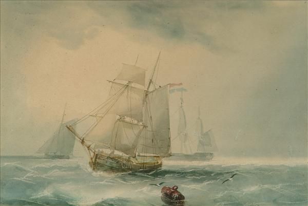 A Dutch brigantine passing other vessels