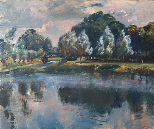 View of a woodland with river bridge and pool, possibly Langham near Dedham