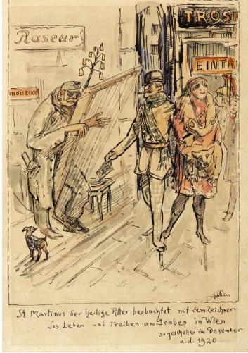 | ST. MARTINUS DER HEILIGE RITTER BEOBACHTET MIT DEM ZEICHNER DAS LEBEN UND TREIBEN AM GRABEN IN WIEN (ST MARTIN THE HOLY KNIGHT A | |