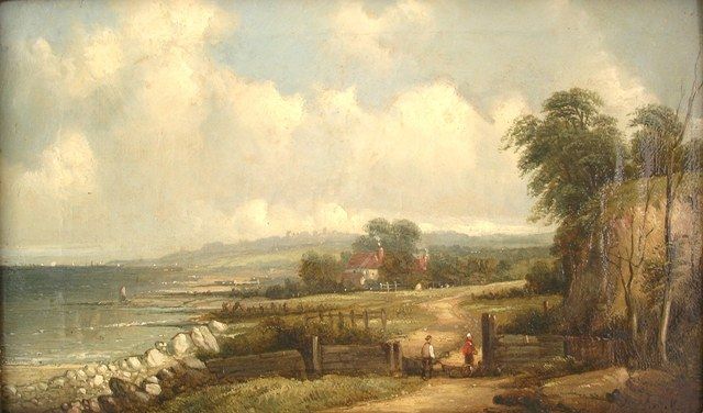 | Two figures by a groyne with a cottage beyond and sea lapping the shore (inscribed verso near Southend) | |