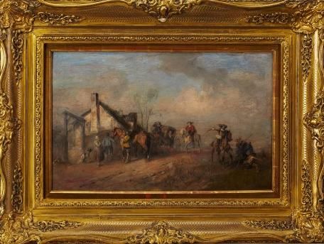 | CAVALIERS RESTING AND MINGLING WITH VILLAGERS | |