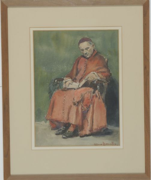 Portrait of a seated cardinal. Signed lower right Alice Howells".