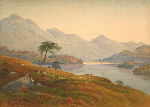 | Mountainous Landscape with Shepherds and Flock near a Lake, and Mountainous Landscape with Cows at the Edge of a Lake | |