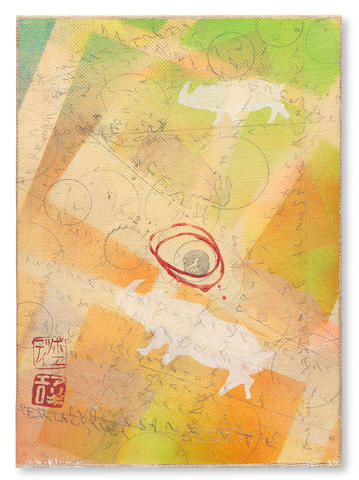 | Ink pencil, paper collage and mixed media on paper laid on canvas | |