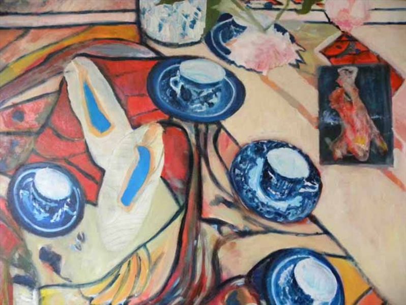 STILL LIFE WITH WILLOW PATTERN BLUE